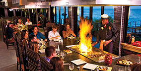 Discover the Perfect Balance. Follow the tantalizing aroma of exotic spices and perfectly grilled delights to the majestic extravagance of Kimonos, a vibrant restaurant that serves up the exotic cuisines of the Far East with an interactive twist. The mid-1940 Teppanyaki cooking style used here is one indication to guests that they're in for a truly memorable experience. With dim lighting, red accents, and Asian-inspired mahogany windows modelled after the fascinating Shoji sliding screens of East Asia, the décor of Kimonos is as chic as any restaurant you'll find in big, modern cities around the world.