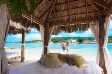 Private cabanas are the perfect way to relax on the beach on Sandals Island